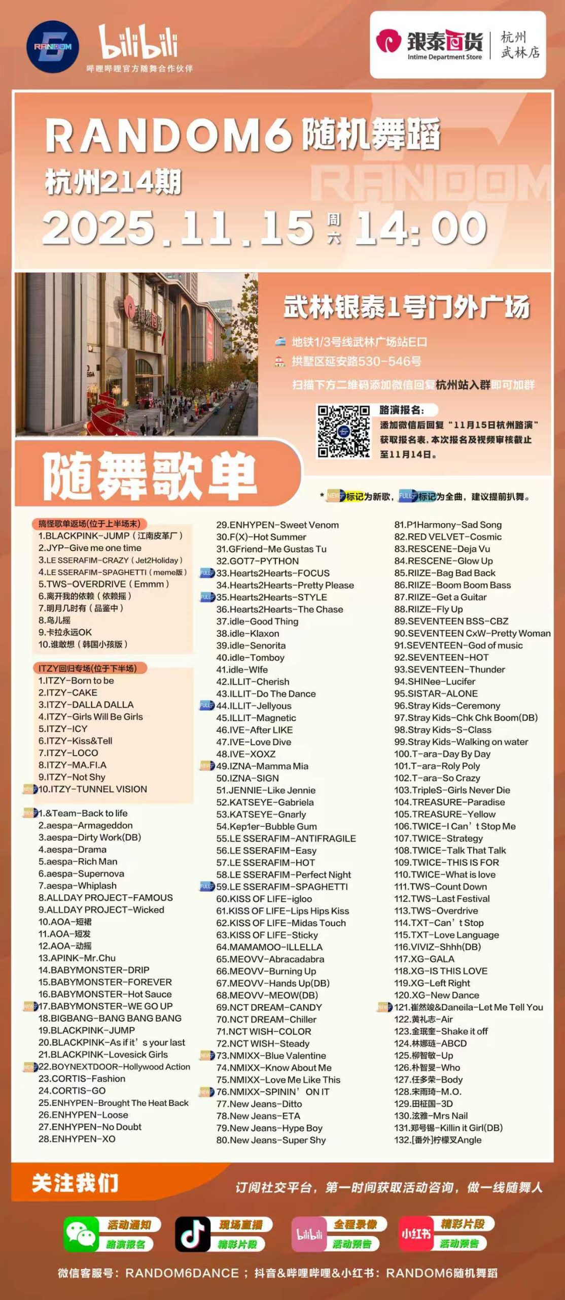 时间:2025年11月15日 周六 14:00地点:武林银泰1号门外广场地铁1/3号线武林广场站E出口